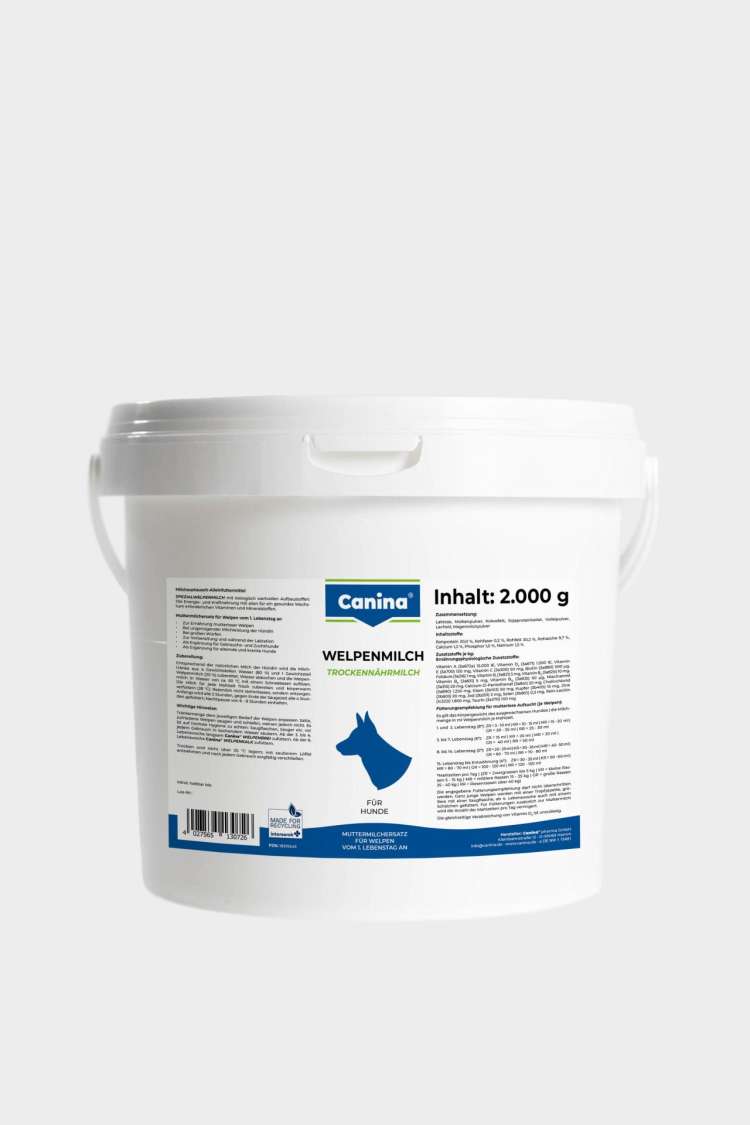 Latte speciale per cuccioli con elementi costitutivi di valore biologico: l’energia e la forza nutrizionale sono garantite da tutte le vitamine e i minerali necessari per una crescita sana. Eliminando il più possibile il lattosio (= zucchero del latte, che causa diarrea nei cuccioli e nei cani giovani), abbiamo sviluppato un latte per cuccioli paragonabile al latte materno. Basandoci sul latte naturale della mamma, prepariamo le bevande a base di latte con 4 parti di acqua (80%) e 1 parte di latte per cuccioli (20%).