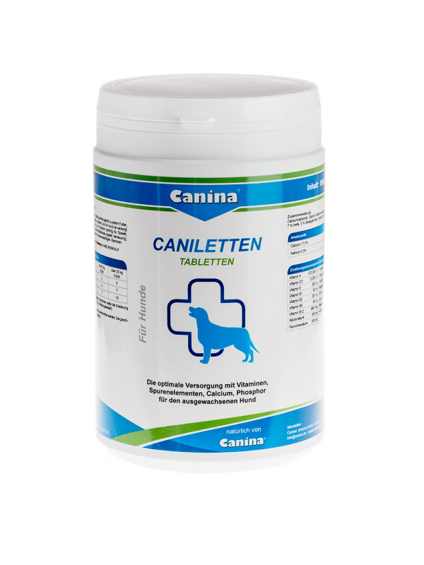 Canina ® CANILETES viene aggiunto ad un pasto preparato in casa o in scatolette di carne pura per ottimizzare il fabbisogno di calcio, fosforo, altri minerali e vitamine.