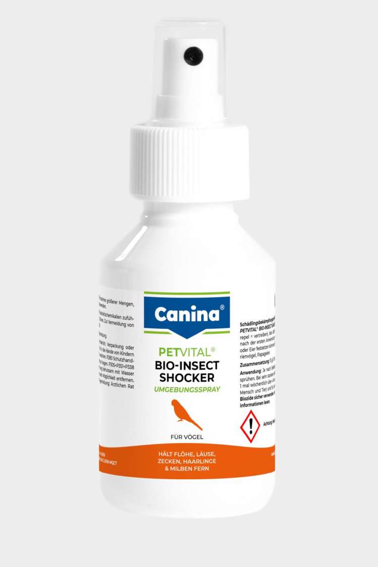 Repellente per parassiti, efficace protezione dagli insetti per tutti gli animali domestici e da compagnia. Tiene efficacemente pulci, pidocchi, zecche, pidocchi del pelo e acari lontani dall’ambiente dell’animale. PETVITAL® BIO-INSECT-SHOCKER è un repellente che respinge i comuni ectoparassiti (parassiti esterni) già dalla prima applicazione, in modo che uova o covate di uova non possano insediarsi nell’ambiente dell’animale. In caso di infestazione da pulci, si consiglia di trattare l’animale anche con il prodotto NOVERMIN SPOT-ON per cani/gatti, che ha un effetto repellente sull’animale stesso. Le uova delle pulci e le lendini possono anche essere lavate via dal pelo dell’animale con VERMINEX SHAMPOO , che ha un effetto immediato. Applicazione: Spruzzare PETVITAL® BIO-INSECT-SHOCKER con parsimonia sulle aree infestate dai parassiti da una distanza di circa 30 cm, in particolare nelle zone notte e giorno degli animali (circa ogni 4-6 settimane). Il contenuto della bottiglia è sufficiente per circa 6 m² .