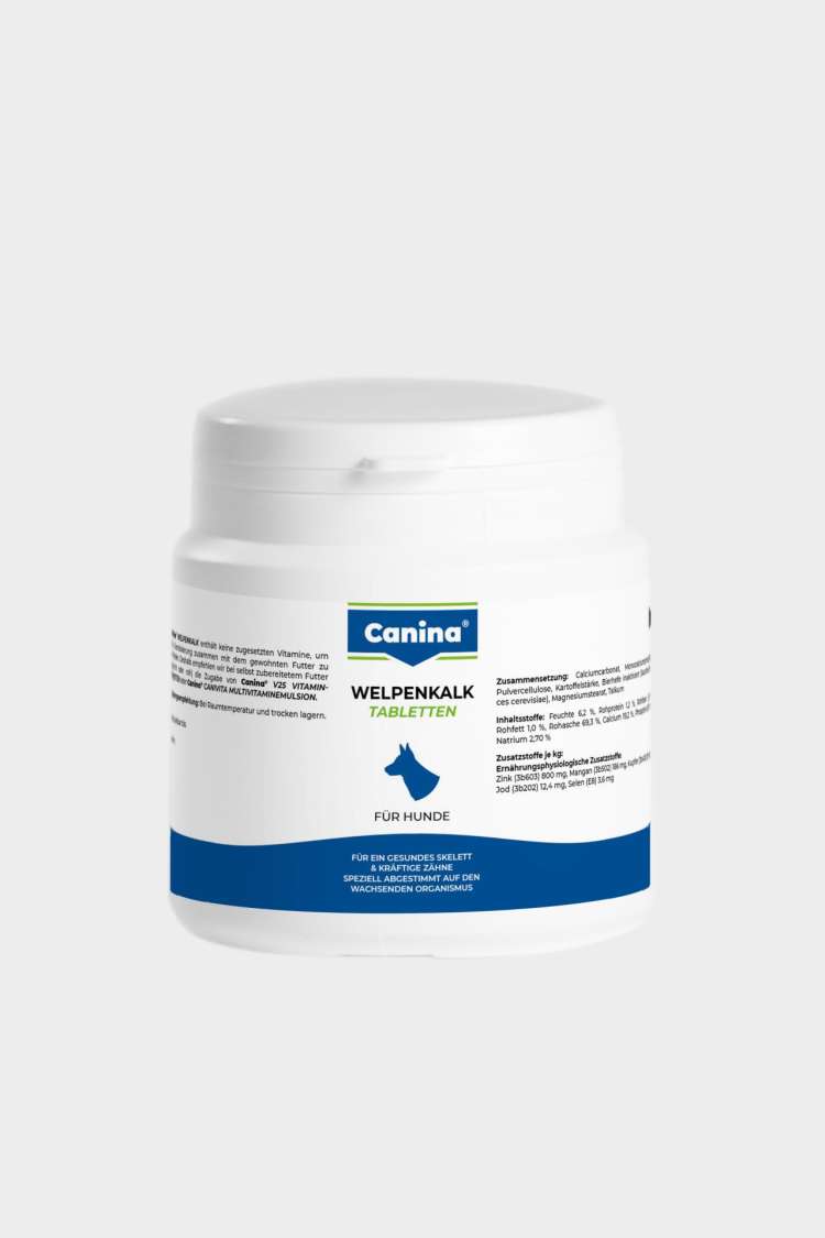 Questo PUPPY LIME ha una composizione bilanciata – con oligoelementi come ferro, zinco, manganese, rame, iodio e selenio – ed è specificamente formulato per l’organismo in crescita. È facilmente digeribile e va aggiunto quotidianamente dal giorno della poppata (circa 6a settimana) fino alla fine della fase di crescita. L’uso regolare e il dosaggio preciso forniscono un supporto ottimale per lo sviluppo di uno scheletro sano e di denti forti. Se il tuo cane si nutre principalmente di carne, ti consigliamo di aggiungere le nostre COMPRESSE VITAMINICHE V25 o CANIVITA a Canina® PUPPY LIME .